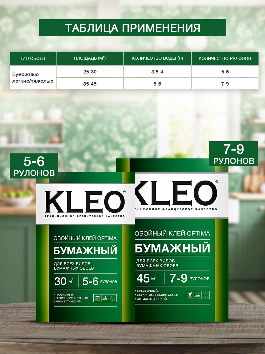 Клей для бумажных обоев kleo optima 7-9