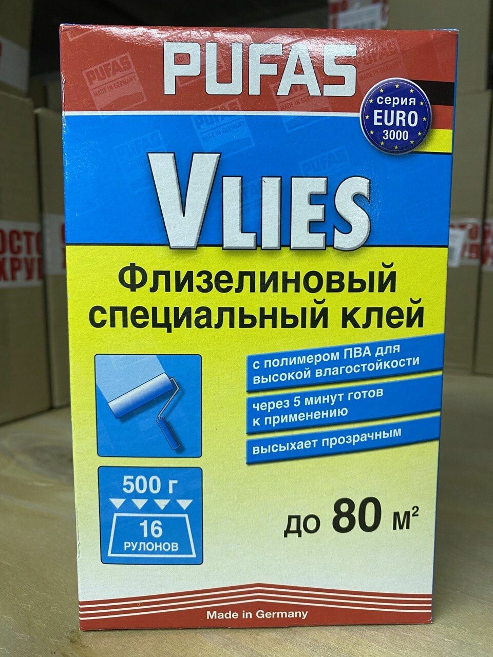 Клей для обоев специальный флизелиновый, Pufas Euro 3000 Vlies Kleber, 500 г., для обоев на флизелиновой и бумажной основе. Производство Германия Пуфас
