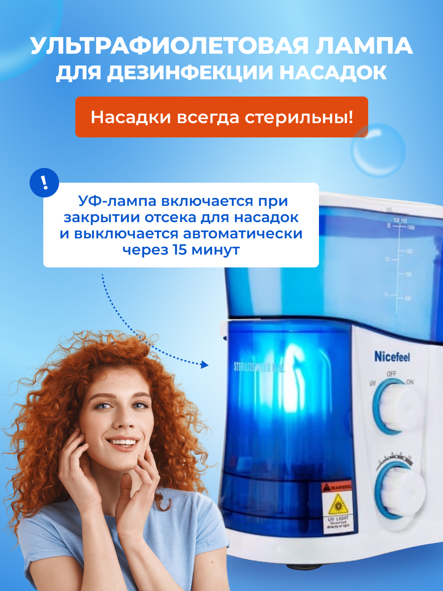 Ирригатор стационарный для полости рта Nicefeel FC-188 UV с функцией дезинфекции насадок интересное: