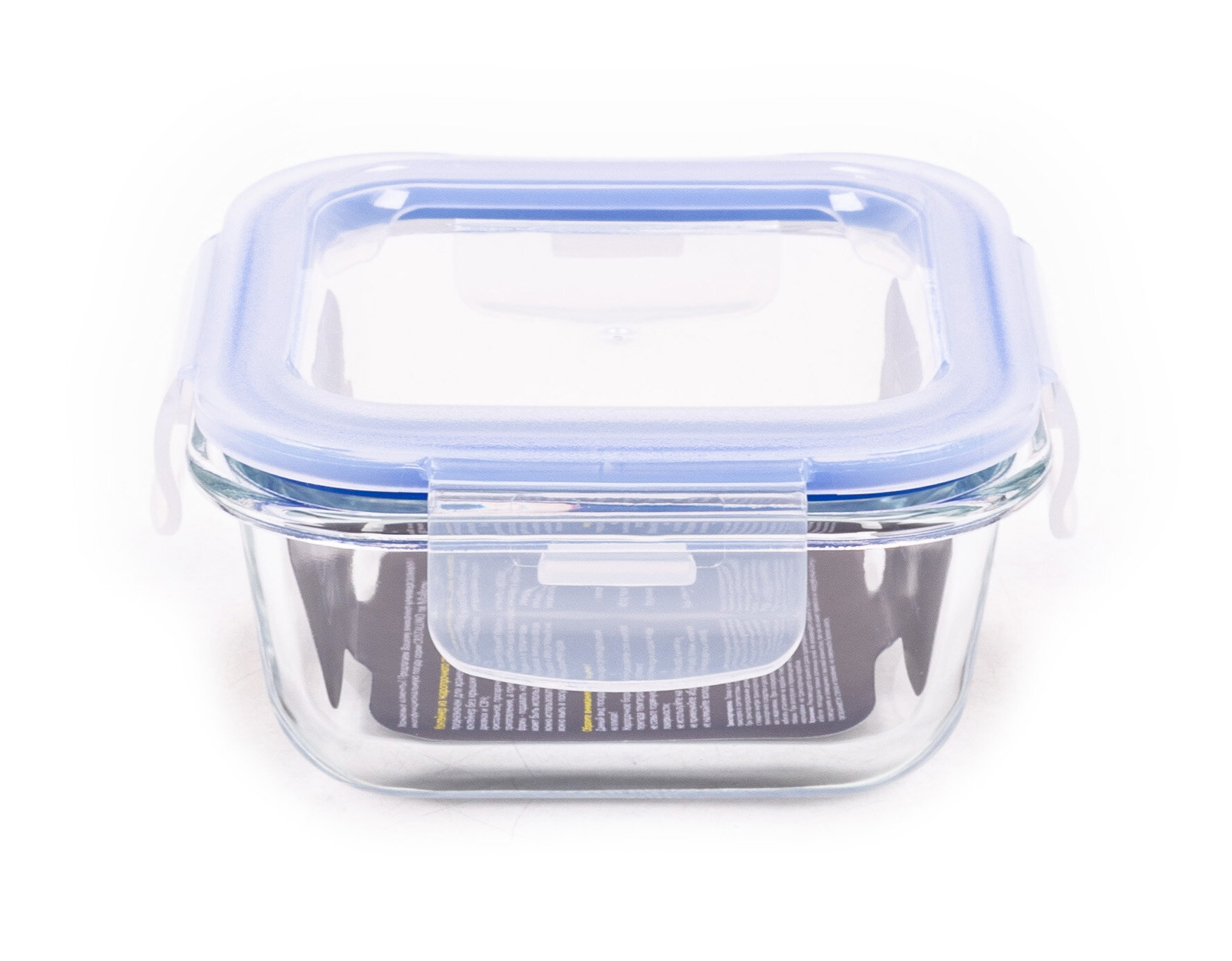 Контейнер для еды 300мл из жаропрочного боросиликатного стекла с крышкой-защелкой, 12*12*5,8 см