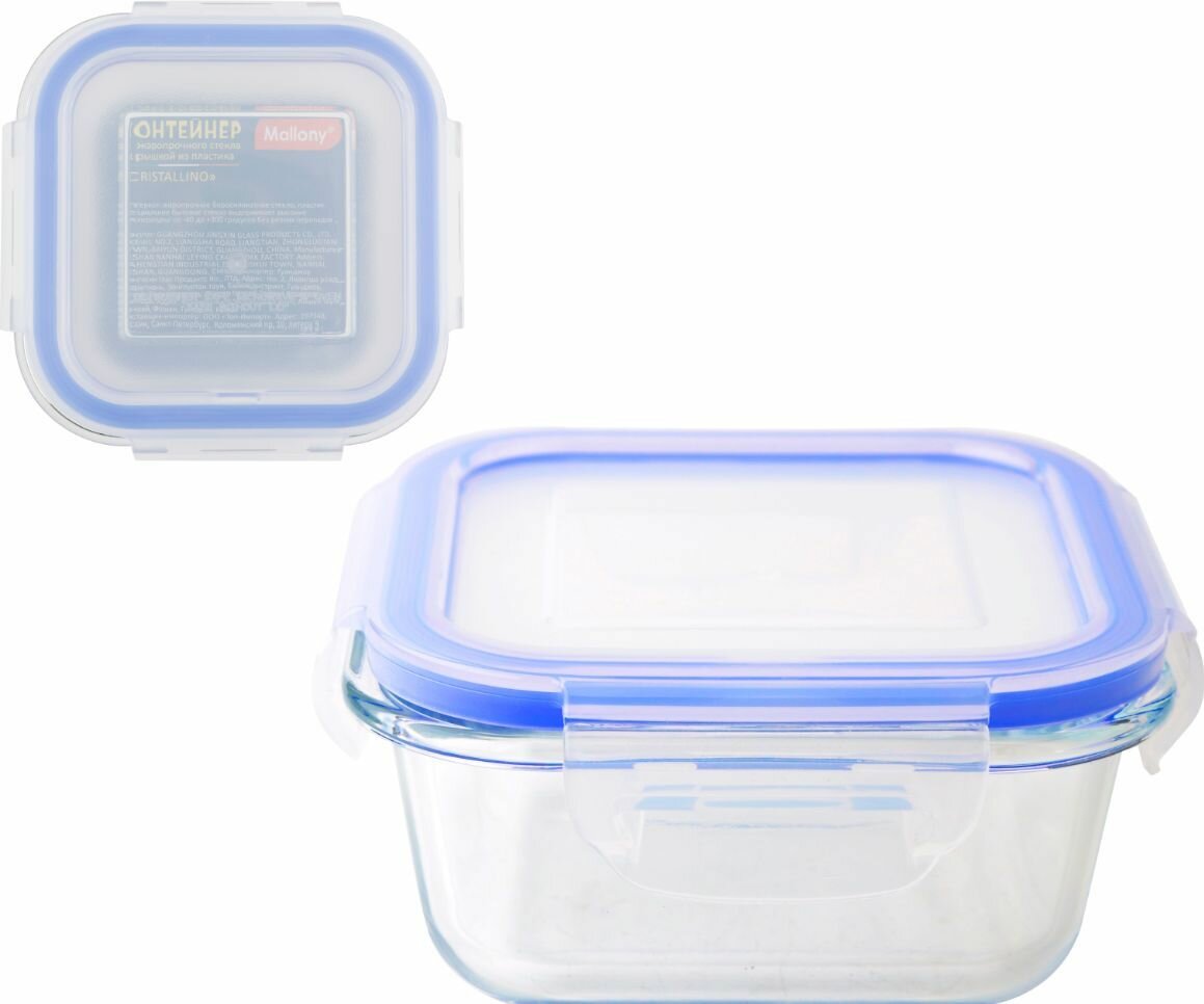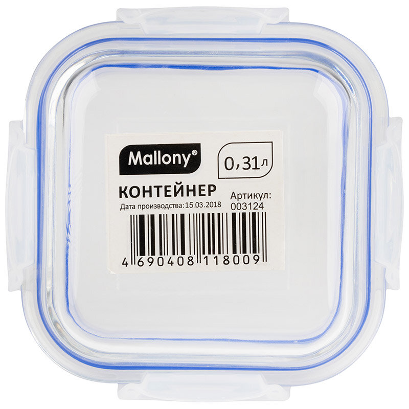 Контейнер Mallony Cristallino 0,3 л, жаропрочное стекло, пластиковая крышка