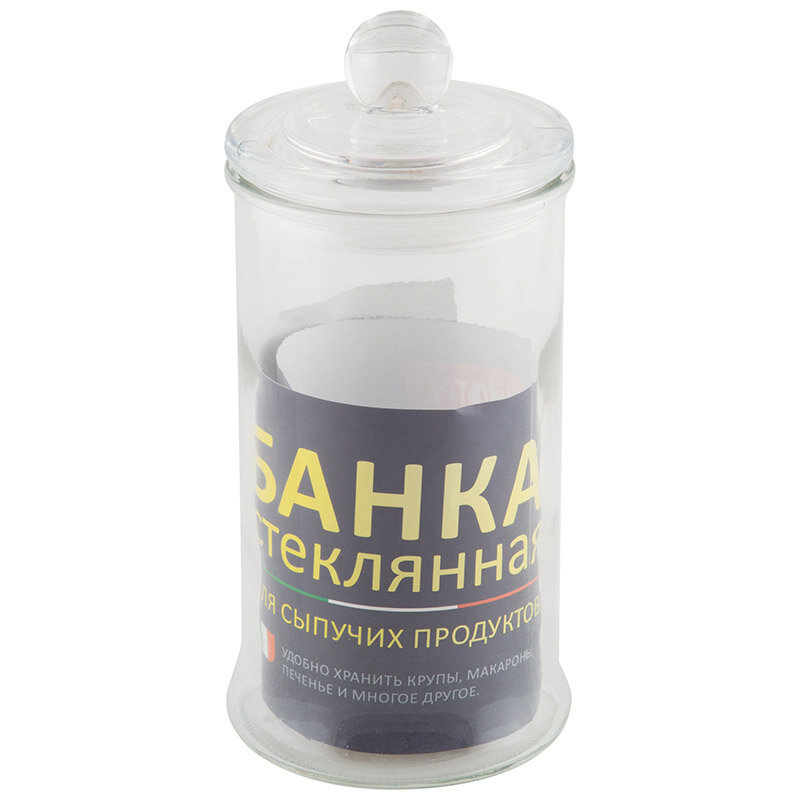 Стеклянная банка для сыпучих продуктов. Объем: 0,9 литра