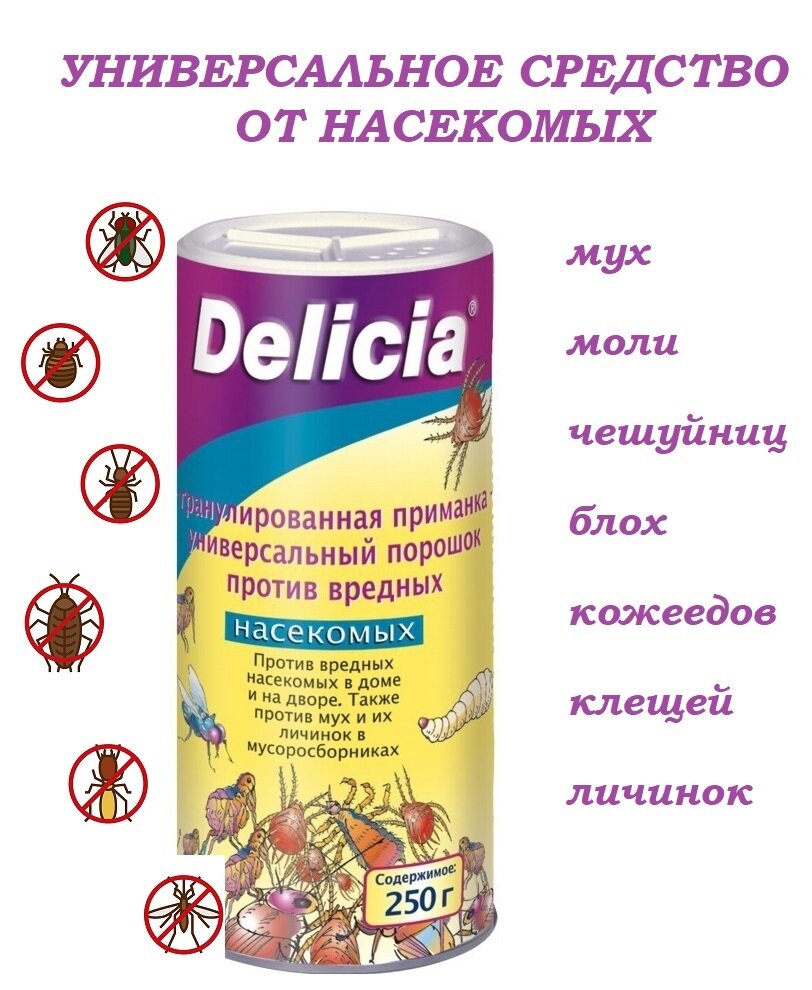 Delicia Гранулированная приманка-порошок универсальная против вредных насекомых 250 гр