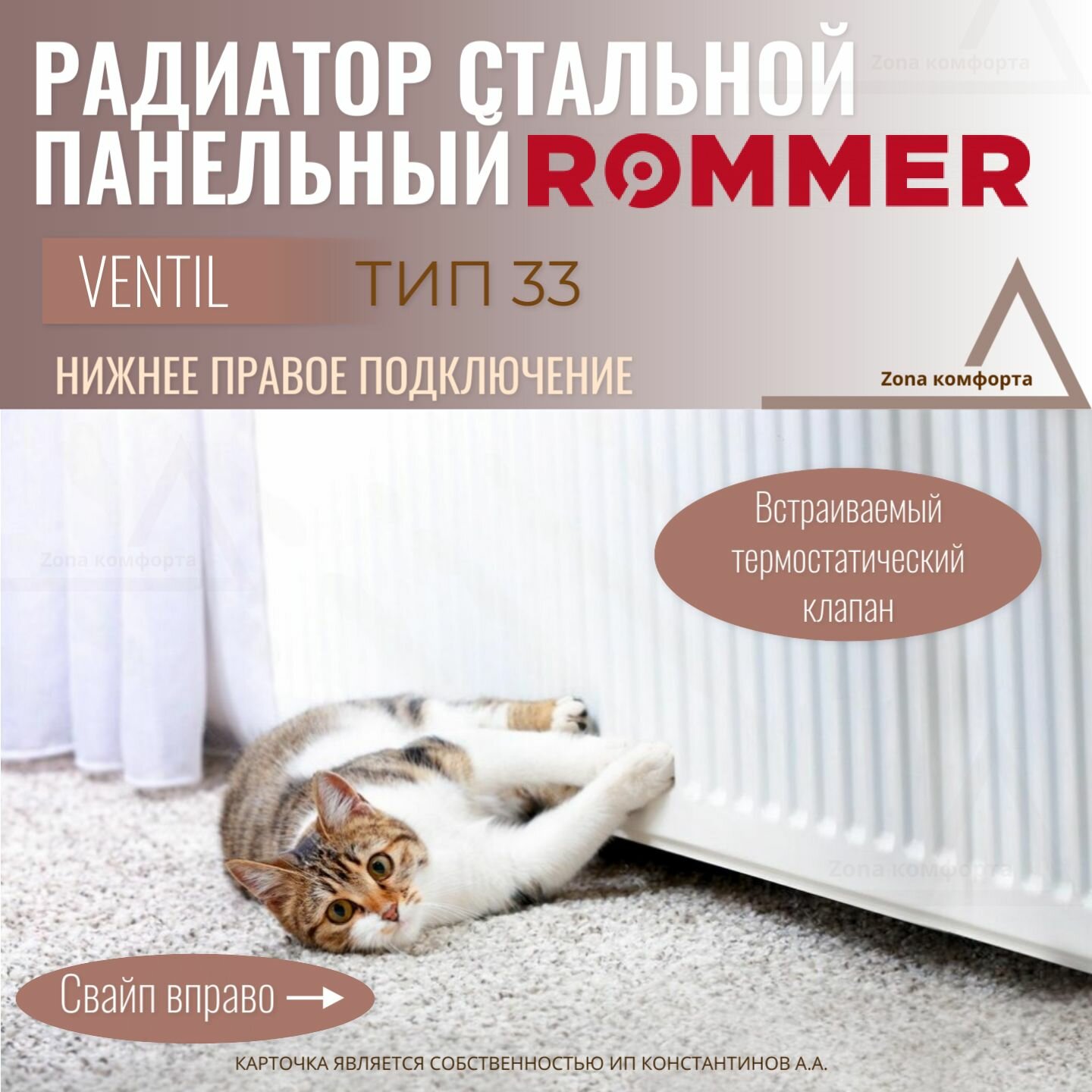 СохранитьРадиатор панельный ROMMER Ventil - нижнее подключение, 33 тип, 300 / 500 интересное:
