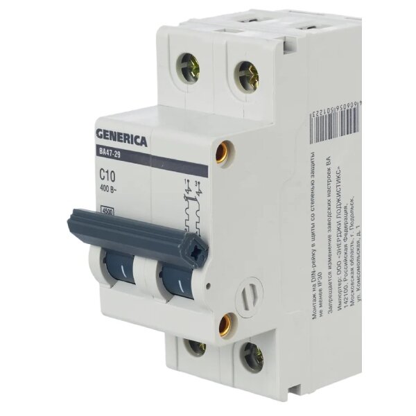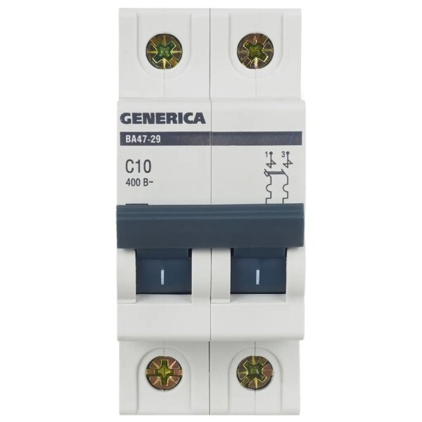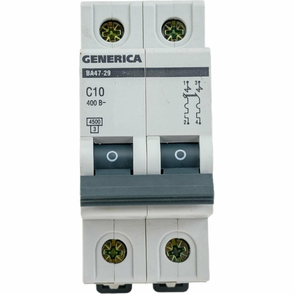 Выключатель автоматический Generica ВА47-29, 2Р, 10 А, 4,5 кА, тип С