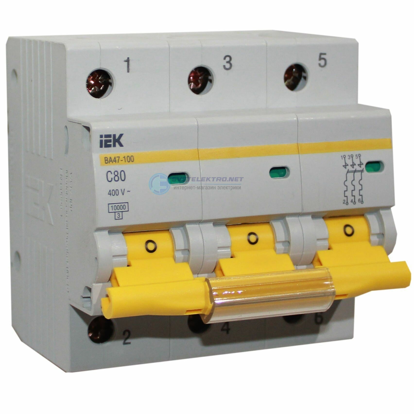 2шт. - Выключатель автоматический трехполюсный 80А C ВА47-100 10кА / IEK; арт. MVA40-3-080-C; оригинал / - комплект 2шт