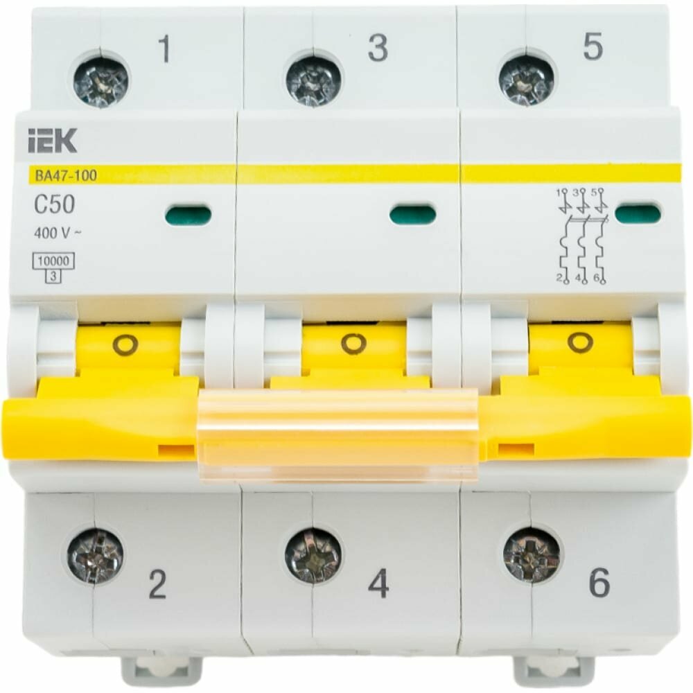 2шт. - Выключатель автоматический трехполюсный 50А С ВА47-100 10кА / IEK; арт. MVA40-3-050-C; оригинал / - комплект 2шт