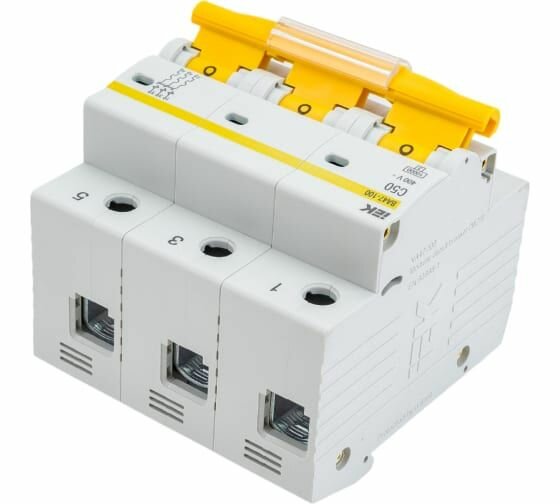 СохранитьВыключатель автоматический трехполюсный ВА47-100 50А C 10кА MVA40-3-050-C IEK интересное: