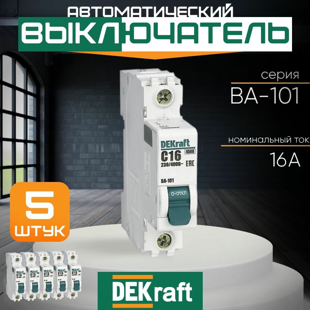 Купить Systeme electric Автоматический выключатель DEKraft 1Р 16А х-ка C ВА-101 4,5кА (комплект 5 шт)