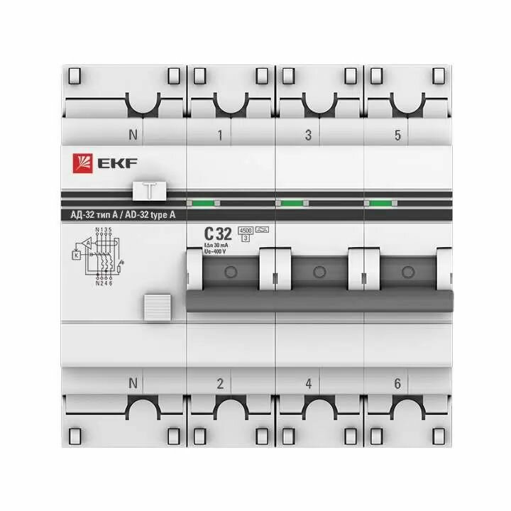 Дифференциальный автомат EKF АД-32 2П C 4.5 кА AC электронный