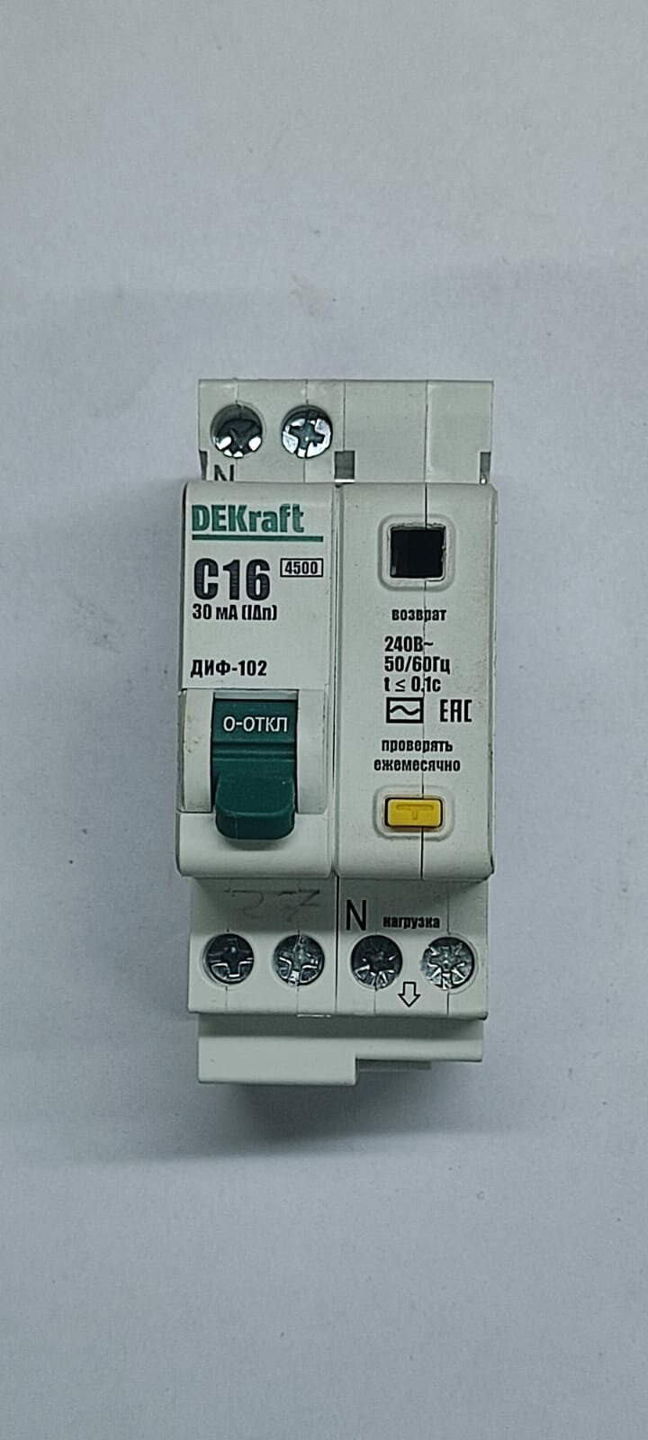 Диф. автомат DEKraft 1Р+N 16А 30мА тип AC х-ка С ДИФ-102 4,5 кА