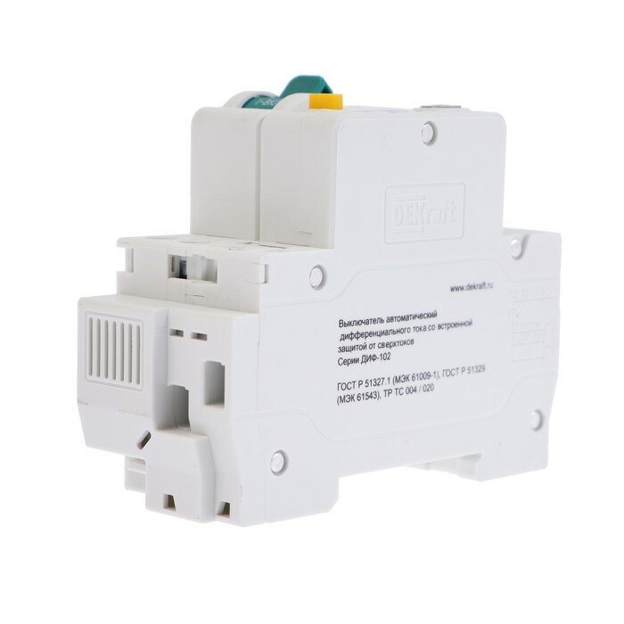 Автоматический выключатель дифференциального тока двухполюсный (1P+N) DEKraft ДИФ-102 10А, 30мА, тип AC, характеристика C
