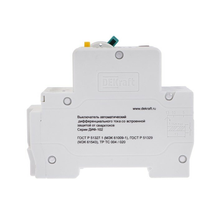 Автомат дифференциальный Dekraft ДИФ-102 (16007DEK) 40А 30 мА 1P+N тип АС 4,5 кА