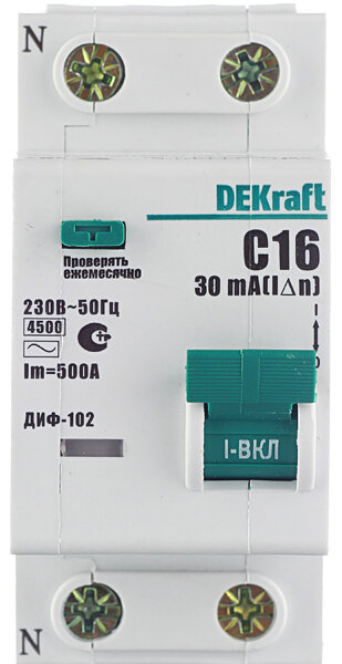 16003DEK Дифференциальный автоматический выключатель DEKraft ДИФ-102 1П+N 16А 30мА, тип AC, 4.5кА, C