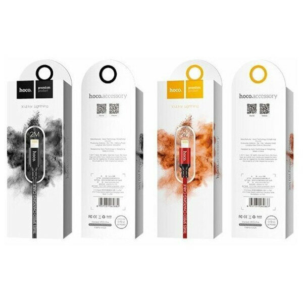 USB Ligntning кабель hoco 6957531062899 X14, черно-красный 2.0m