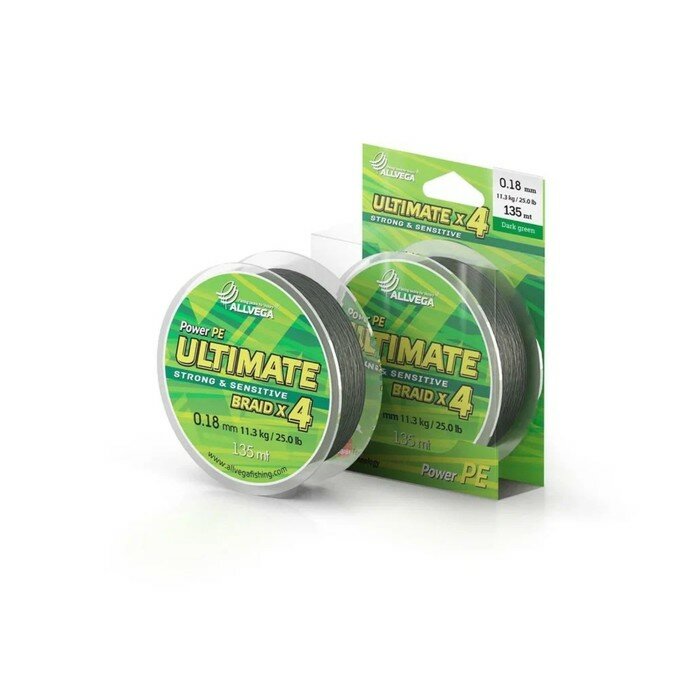 Купить Плетеный шнур Allvega Ultimate 135м, 0.18мм, 11.3кг, тёмно-зелёный