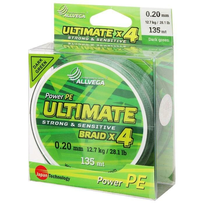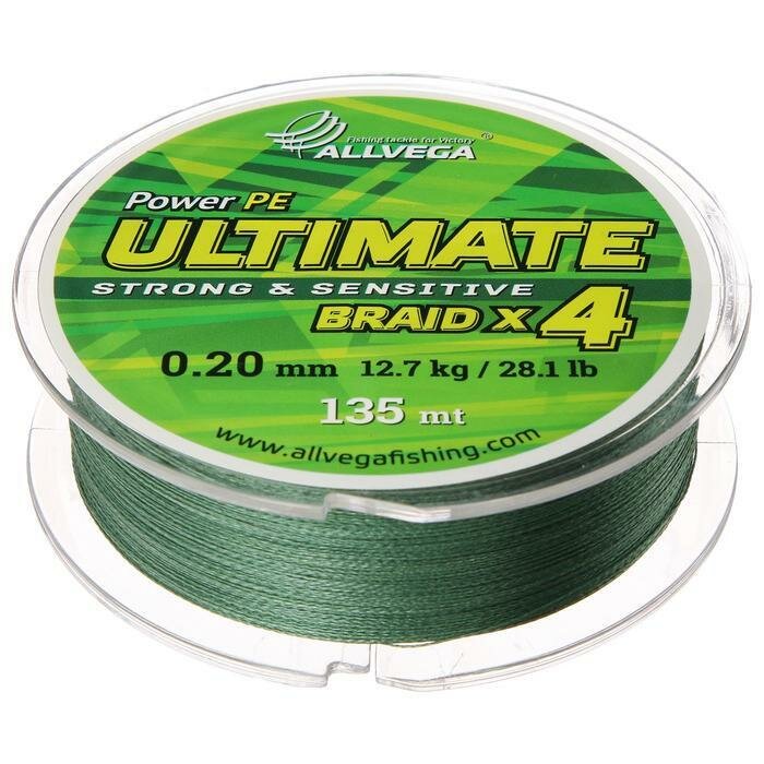 Шнур плетёный ALLVEGA "Ultimate" 135м тёмно-зелёный 0.28мм (19.8кг), 1 штука
