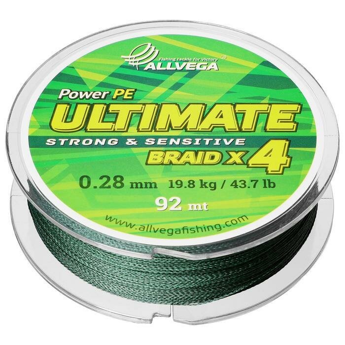 Шнур плетёный ALLVEGA "Ultimate" 92м тёмно-зелёный 0.30мм (21.8кг), 1 штука