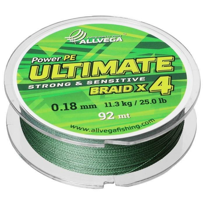 Купить Плетеный шнур Allvega Ultimate 92м, 0.18мм, 11.3кг, тёмно-зелёный