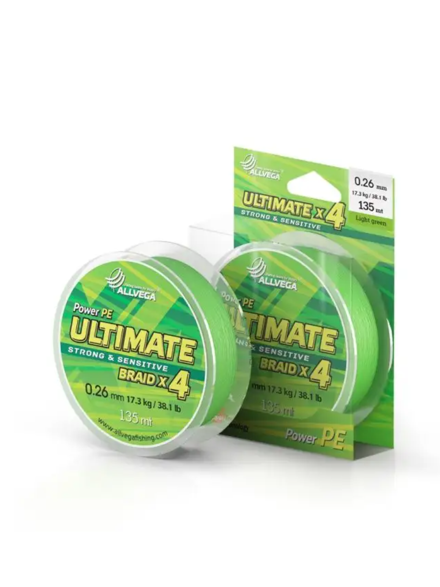 Плетеный шнур Allvega Ultimate 135м, 0.24мм, 15.3кг, светло-зелёный
