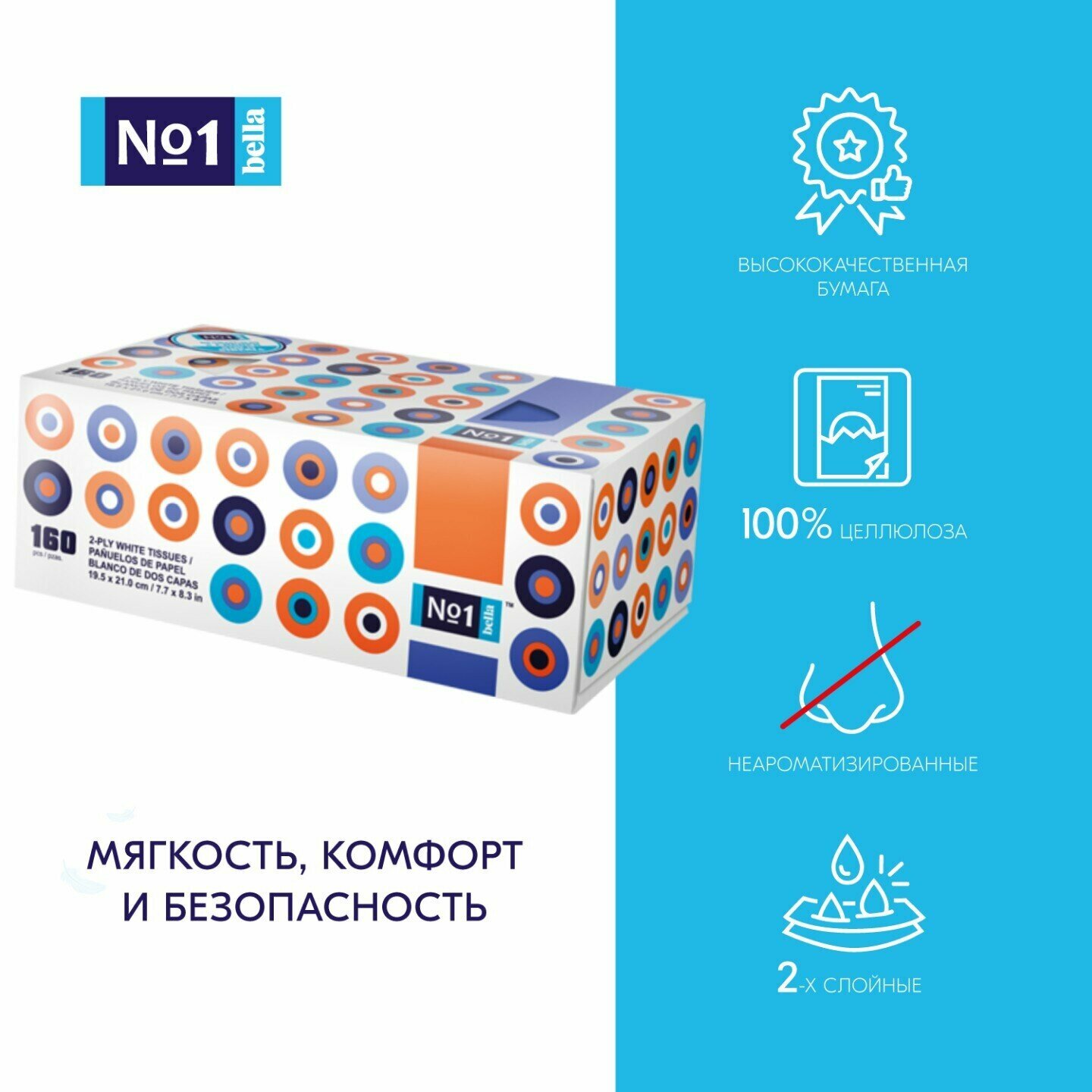 BELLA 160 шт Платочки бумажные Двухслойные Bella №1 Универсальные коробка