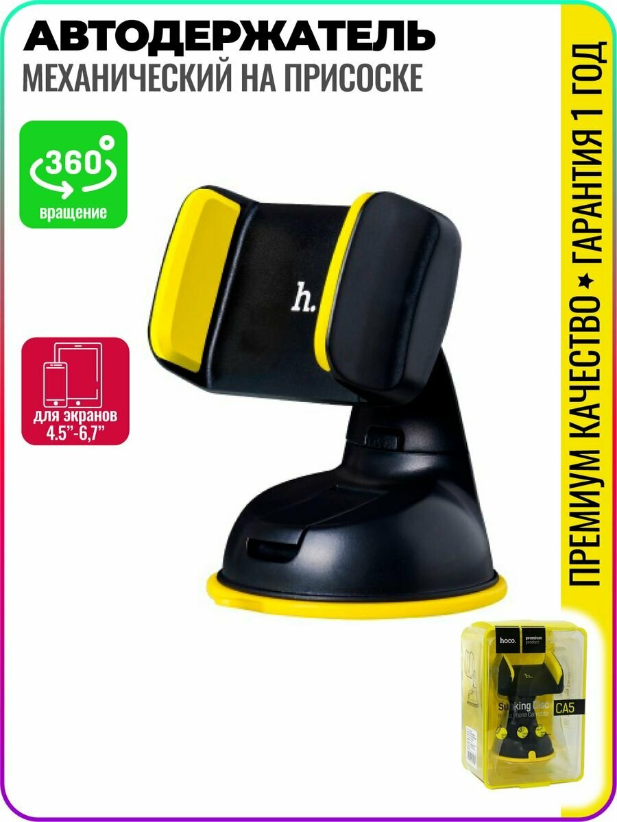 Автомобильный держатель Hoco CA5 (на присоске / на шарнире) черный с желтым