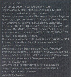 | Плюсы: | Хорошая деревянная перцемолка. |