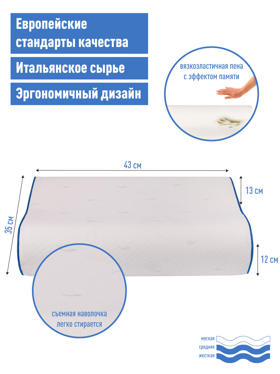 Подушка ортопедическая с эффектом памяти MemorySleep S Medium 43x35x12/13