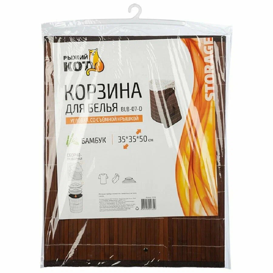 Корзина для белья угловая Рыжий кот BLB-07-D, 35 x 35 x 50 см, бамбук темный
