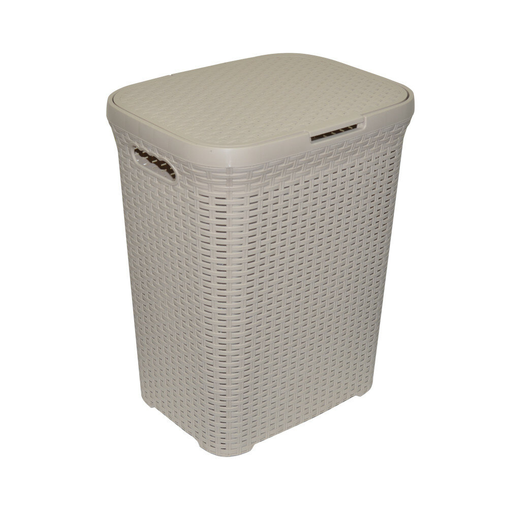 Корзина для белья с крышкой 40л Ротанг, пластик, цвет капучино