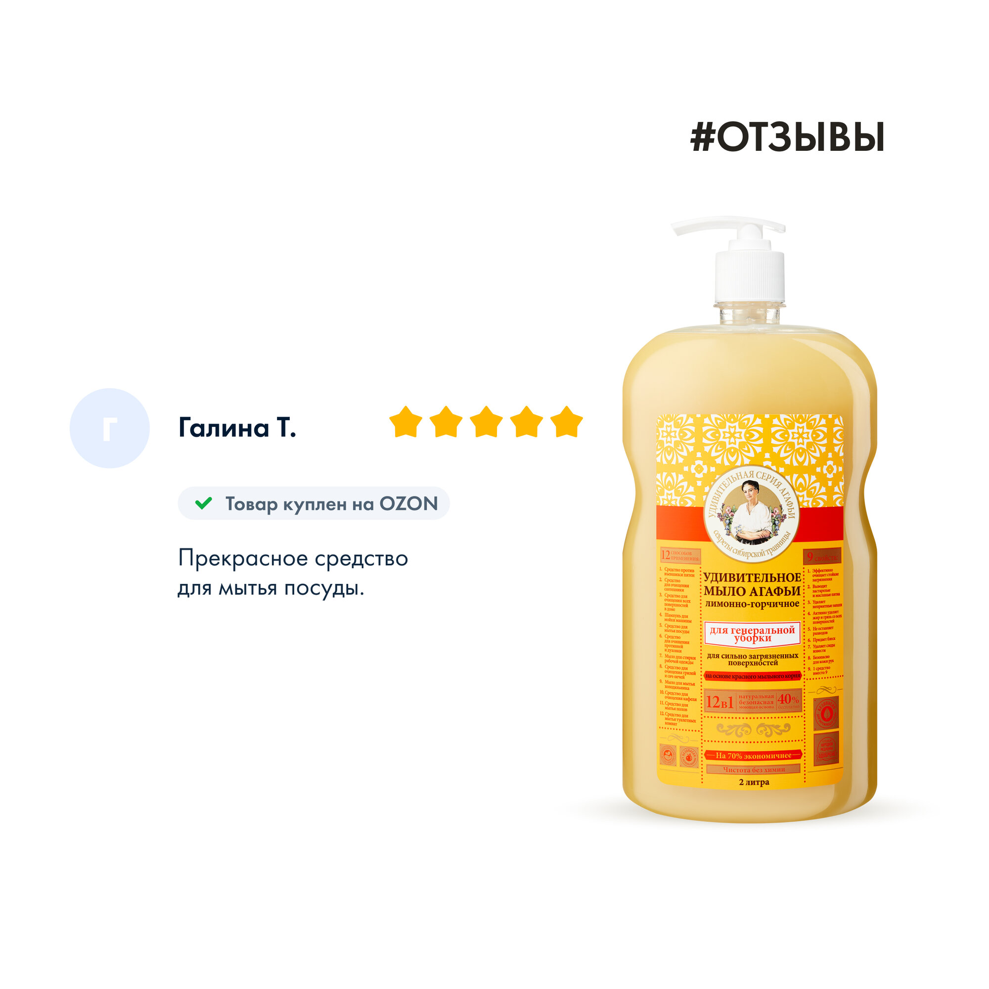 Ниже Вы можете прочитать отзывы на Мыло хозяйственное Рецепты бабушки Агафьи Лимонно-горчичное, для генеральной уборки, 2000 мл, ознакомится с подробными характеристиками, посмотреть интересные обзоры и фотографии на Мыло хозяйственное Рецепты бабушки Агафьи Лимонно-горчичное, для генеральной уборки, 2000 мл.