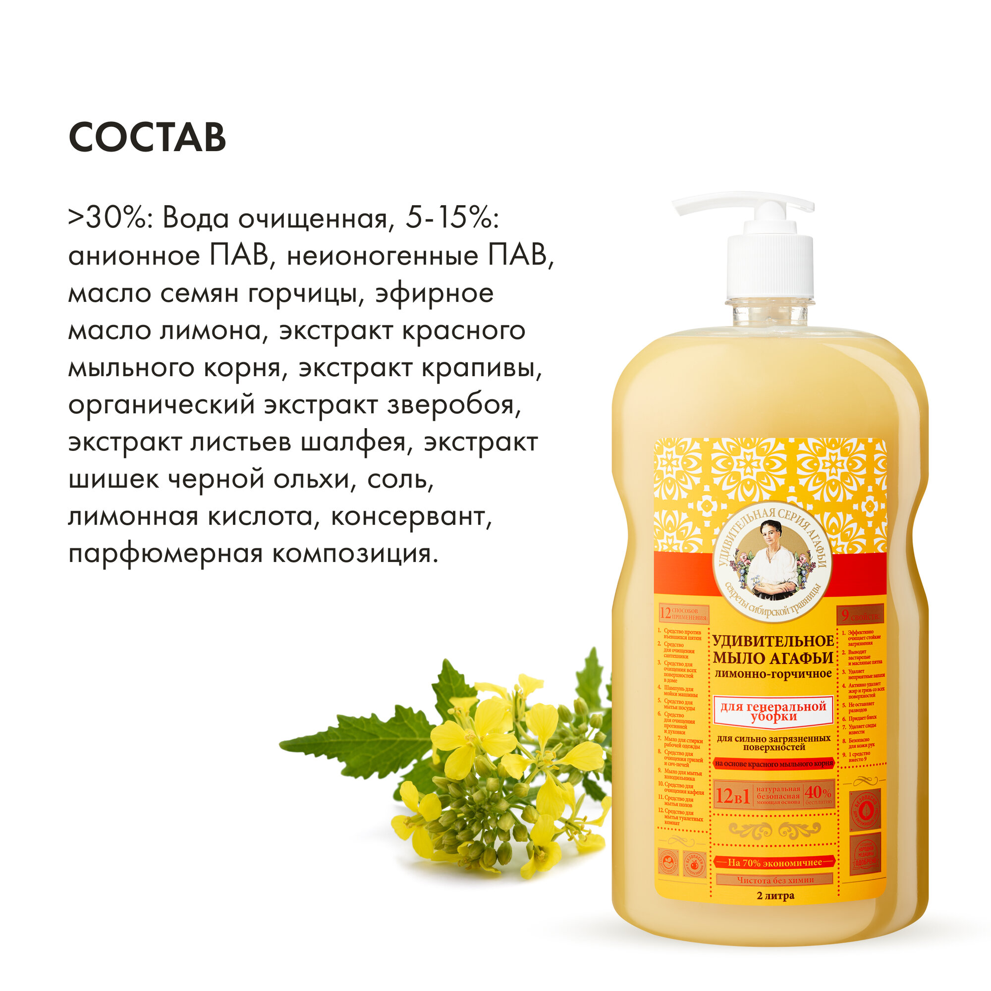 Хозяйственное мыло рецепты бабушки агафьи Лимонно-горчичное, для генеральной уборки, 2 л