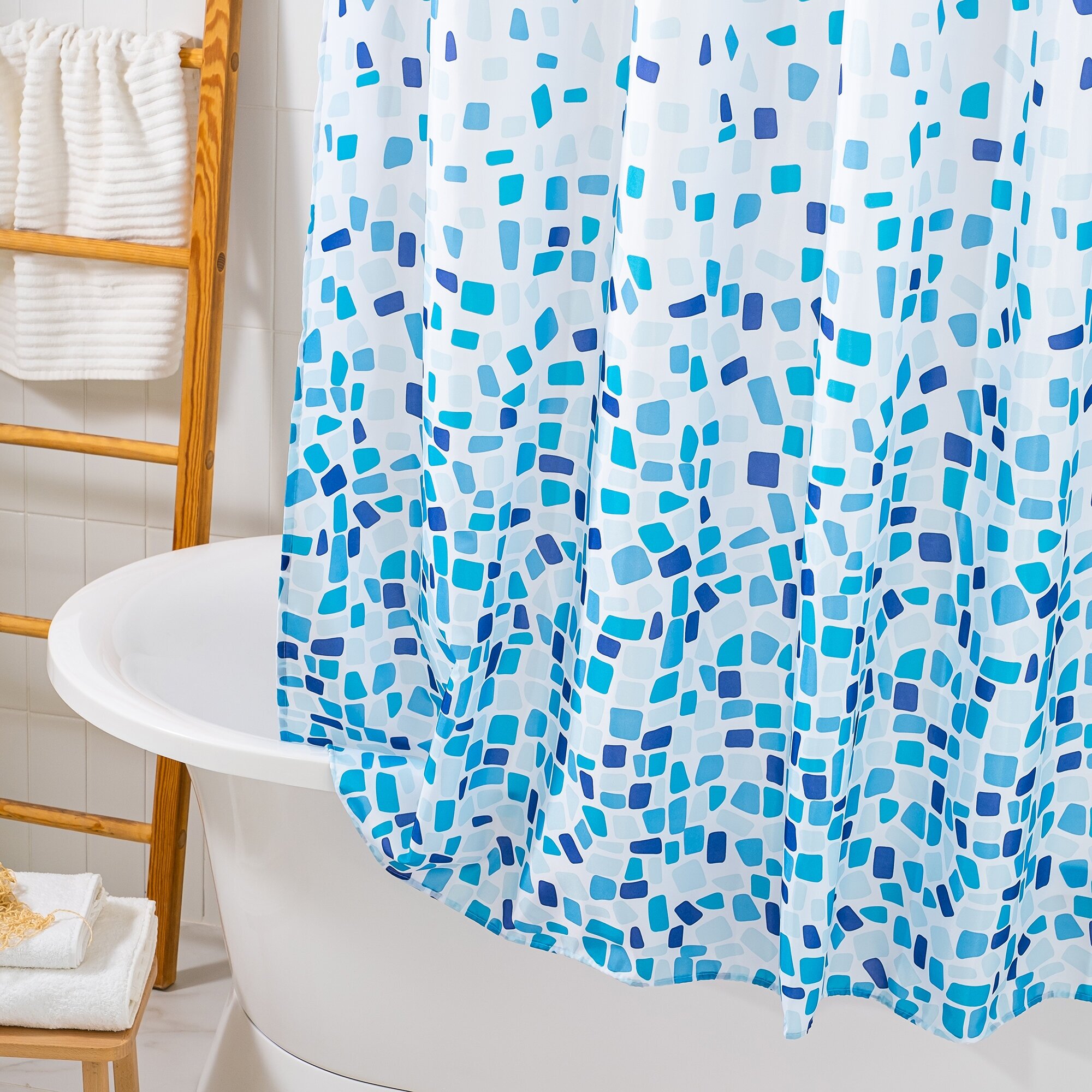 Купить Занавеска (штора) Mоzаic для ванной комнаты тканевая 180х180 (шхв)см., цвет синий
