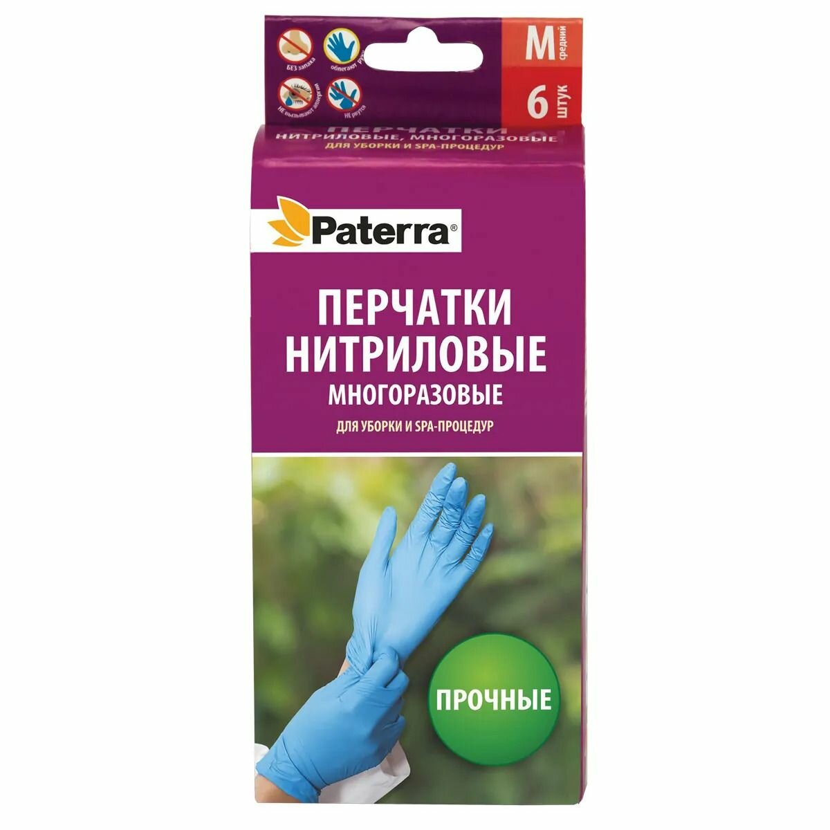 PATERRA Перчатки нитриловые универсальный размер 6 шт в картонной упаковке 402-410