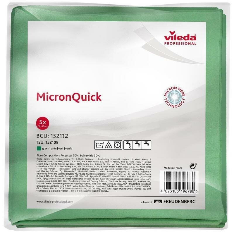 Салфетка хозяйственная Vileda MicronQuick (40х38см) микрофибра, зеленая, 5шт. (152112)