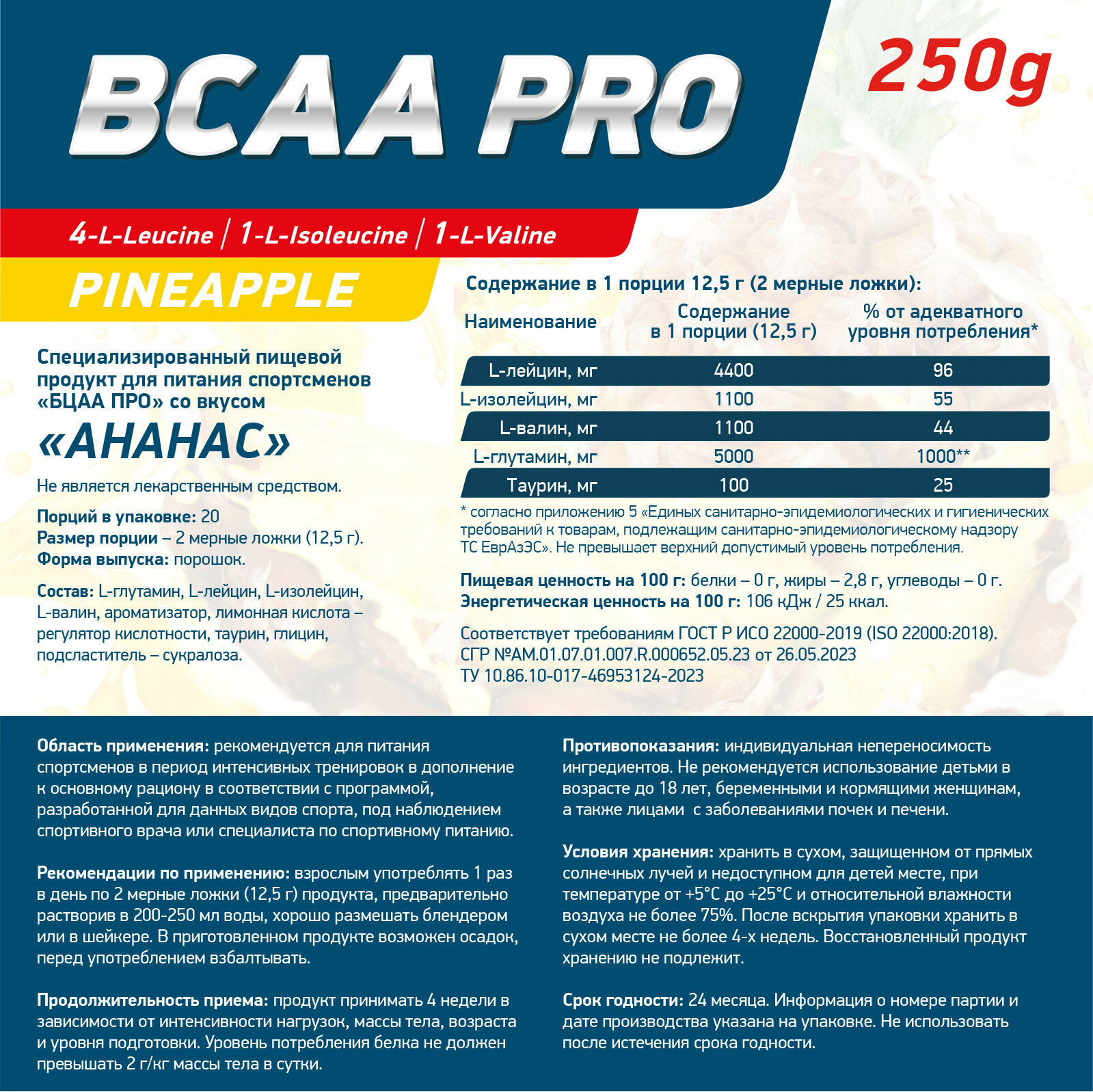 аминокислоты бцаа BCAA PRO 4:1:1 Ананас 250 грамм
