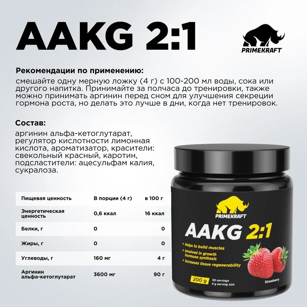 Купить Аминокислоты, аргинин Prime Kraft AAKG 2:1 - 200 грамм, клубника