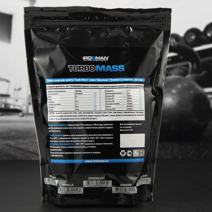 Гейнер Ironman, Turbo Mass, 700г (Шоколад) Спортивное питание для набора мышечной массы