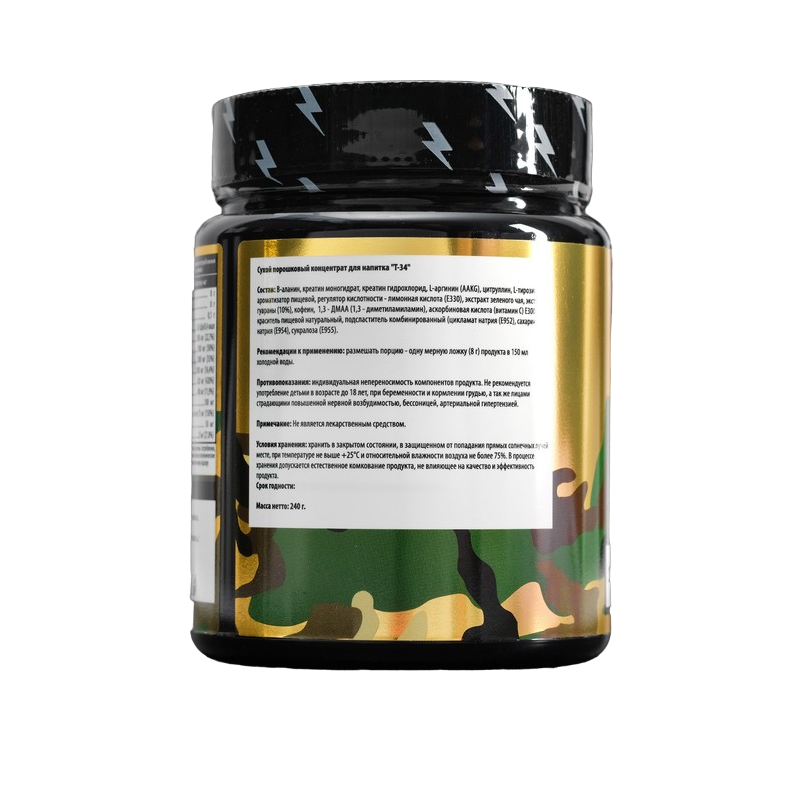 Предтренировочный комплекс SportLine Nutrition T-34, адреналин, 240 г SportLine 4600925 .