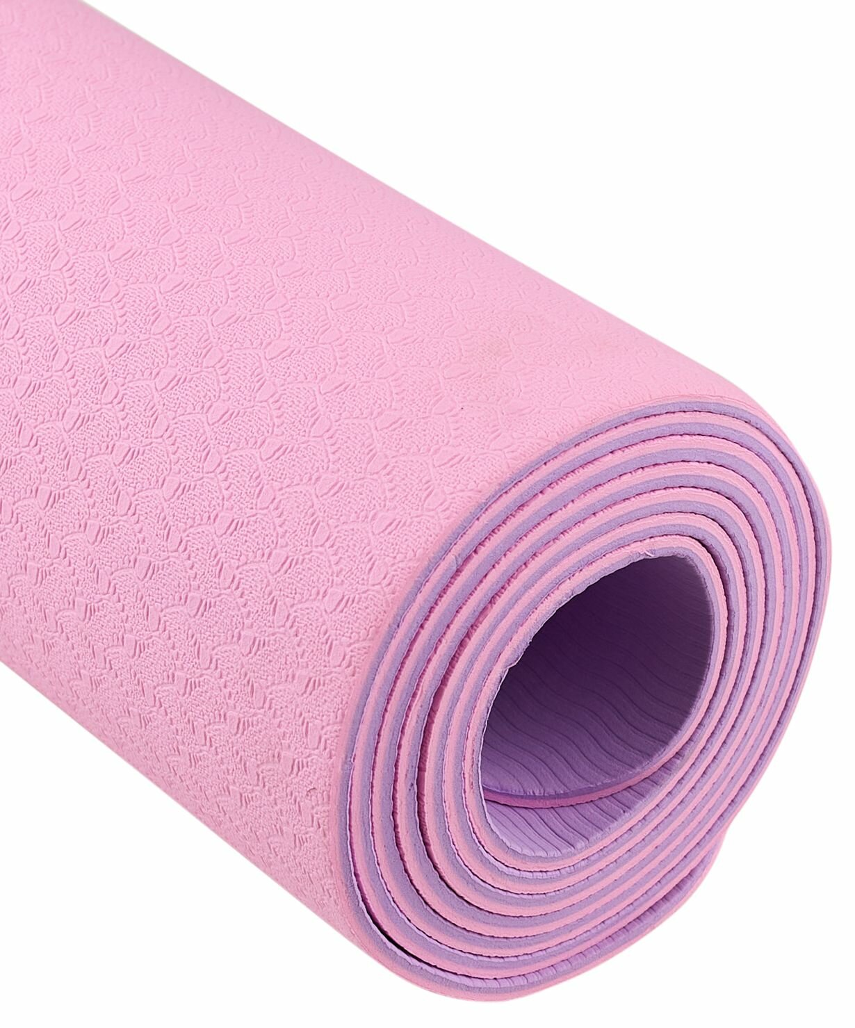 Купить Коврик для йоги и фитнеса FM-201, TPE, 183x61x0,4 см, розовый пастель/фиолетовый пастель