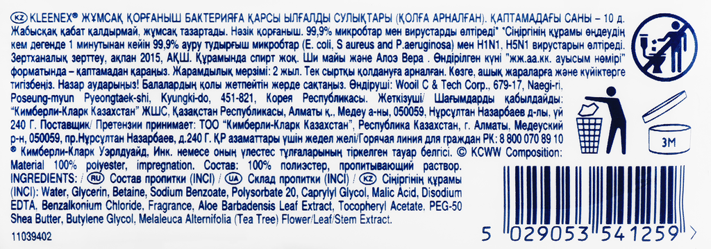 | Отзыв: | Внимание!!!!!! Этот товар сканируется, как Антибактериальные влажные салфетки с маслом ши и алоэ вера "KLEENEX PROTECT", 139 х 200 мм, 10 , а на самом деле Антибактериальные влажные салфетки для рук Kleenex. Бережная защита. размер 125х200 мм.