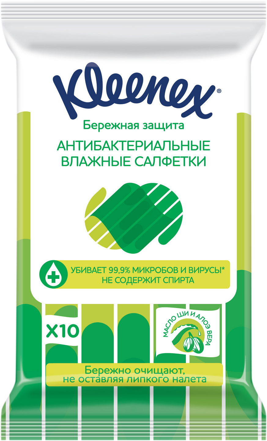 Влажные салфетки Kleenex Бережная защита антибактериальные, 10 шт.