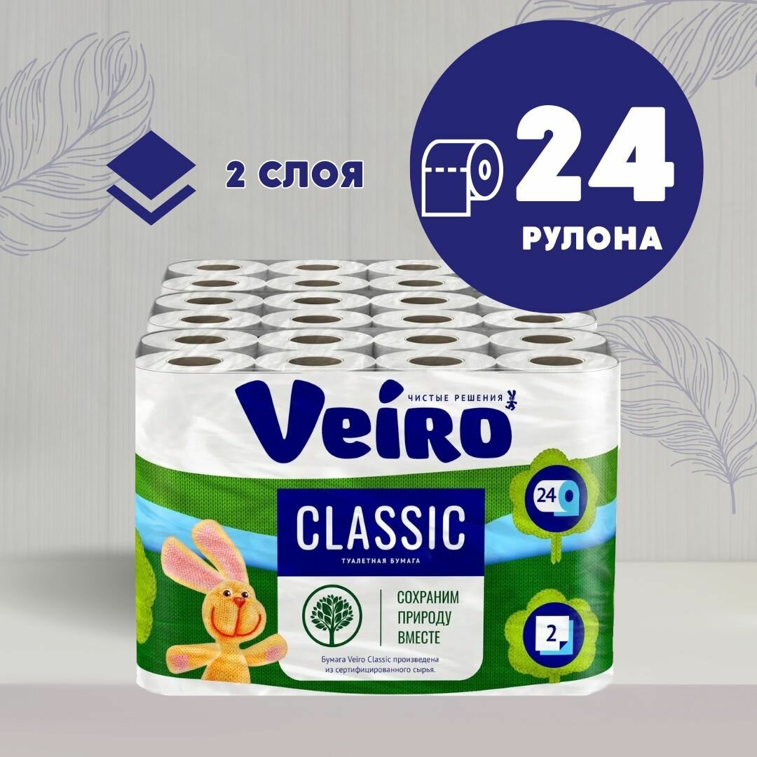 СохранитьБумага туалетная Veiro Classic (2-слойная, белая, 24 рулона в упаковке) интересное:
