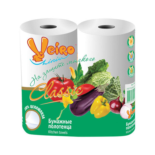 Veiro полотенца бумажные Classic, 2-х слойные, 2 шт. в уп., 2 уп.