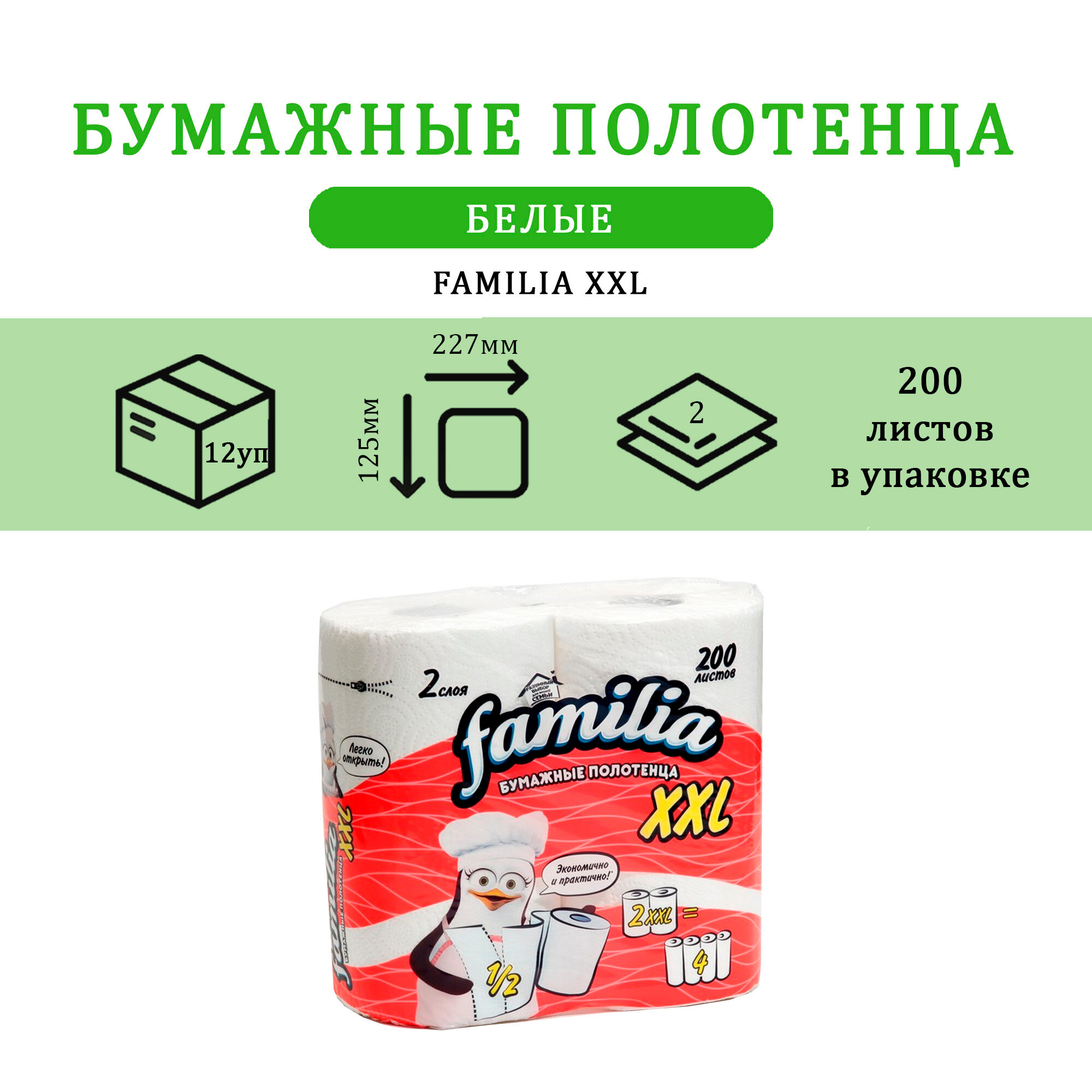 Familia Полотенца бумажные «Familia» белые 2 сл, XXL, 2 рулона, 200 листов в рулоне