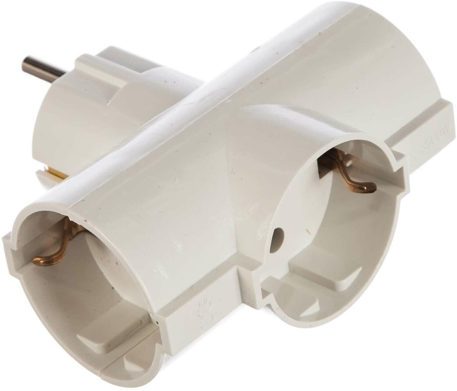 Тройник для розетки электрический с заземлением 16А, белый