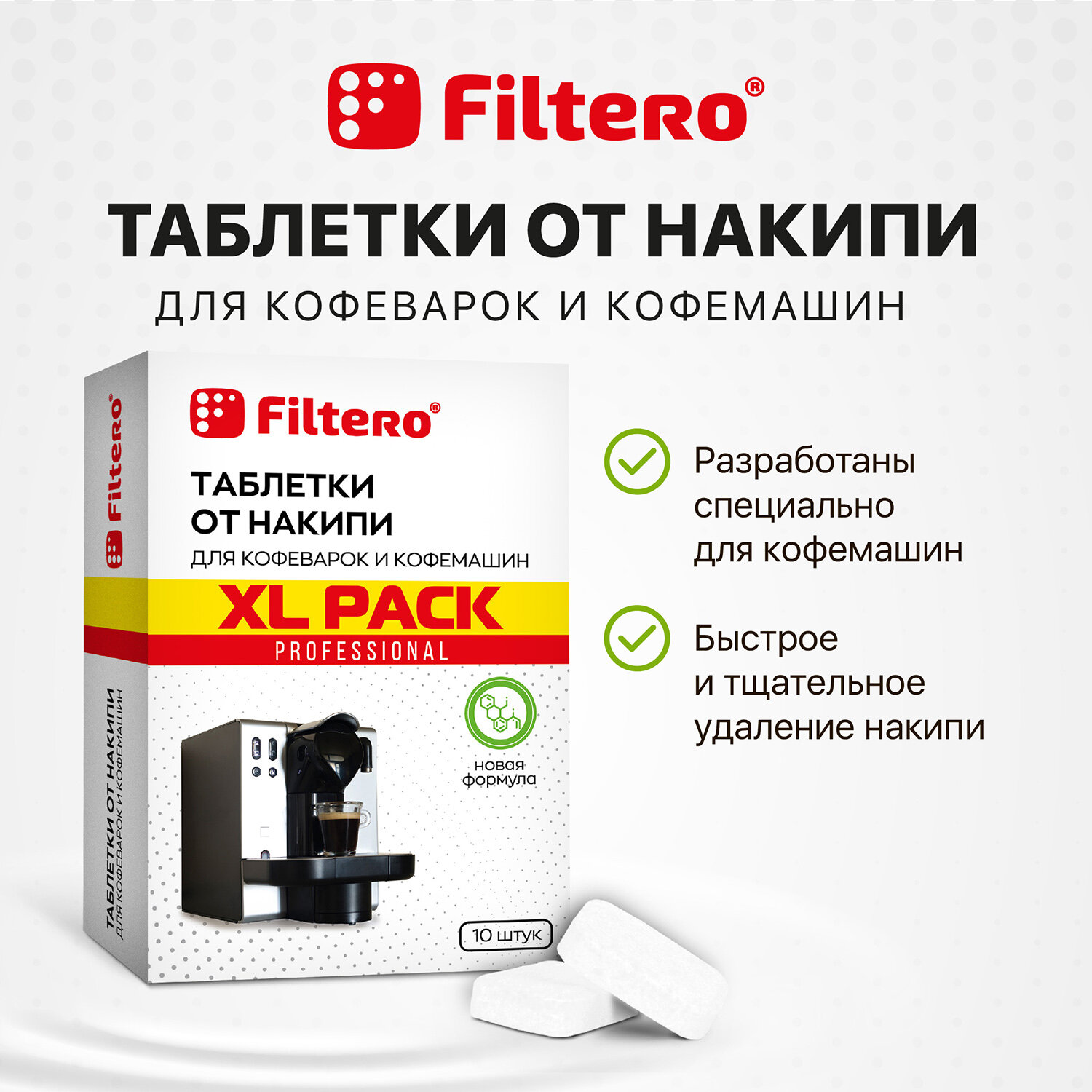 Таблетки от накипи Filtero для кофеварок и кофемашин XL Pack, 10 штук
