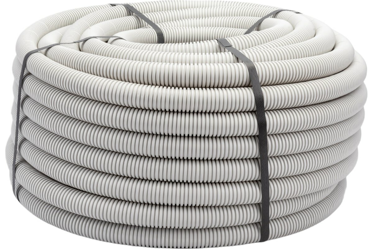 Труба гофрированная d32 ПВХ серая с зондом н/г Строительная ЭРА (бухта 50 метров)