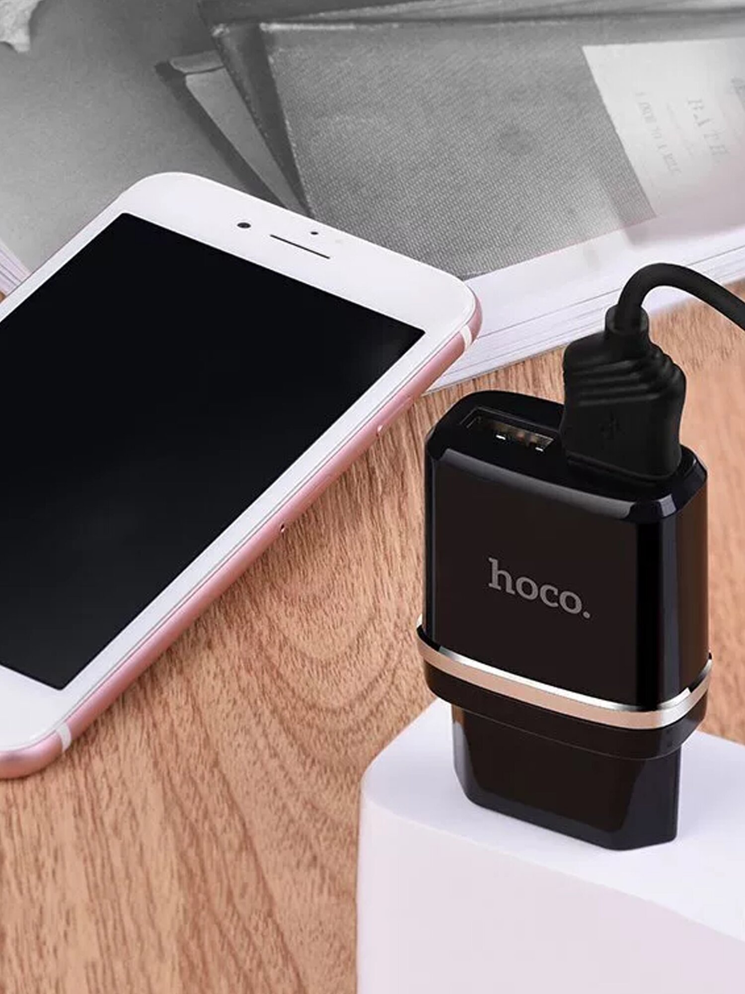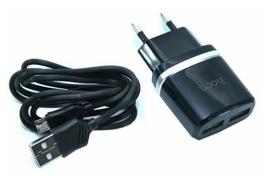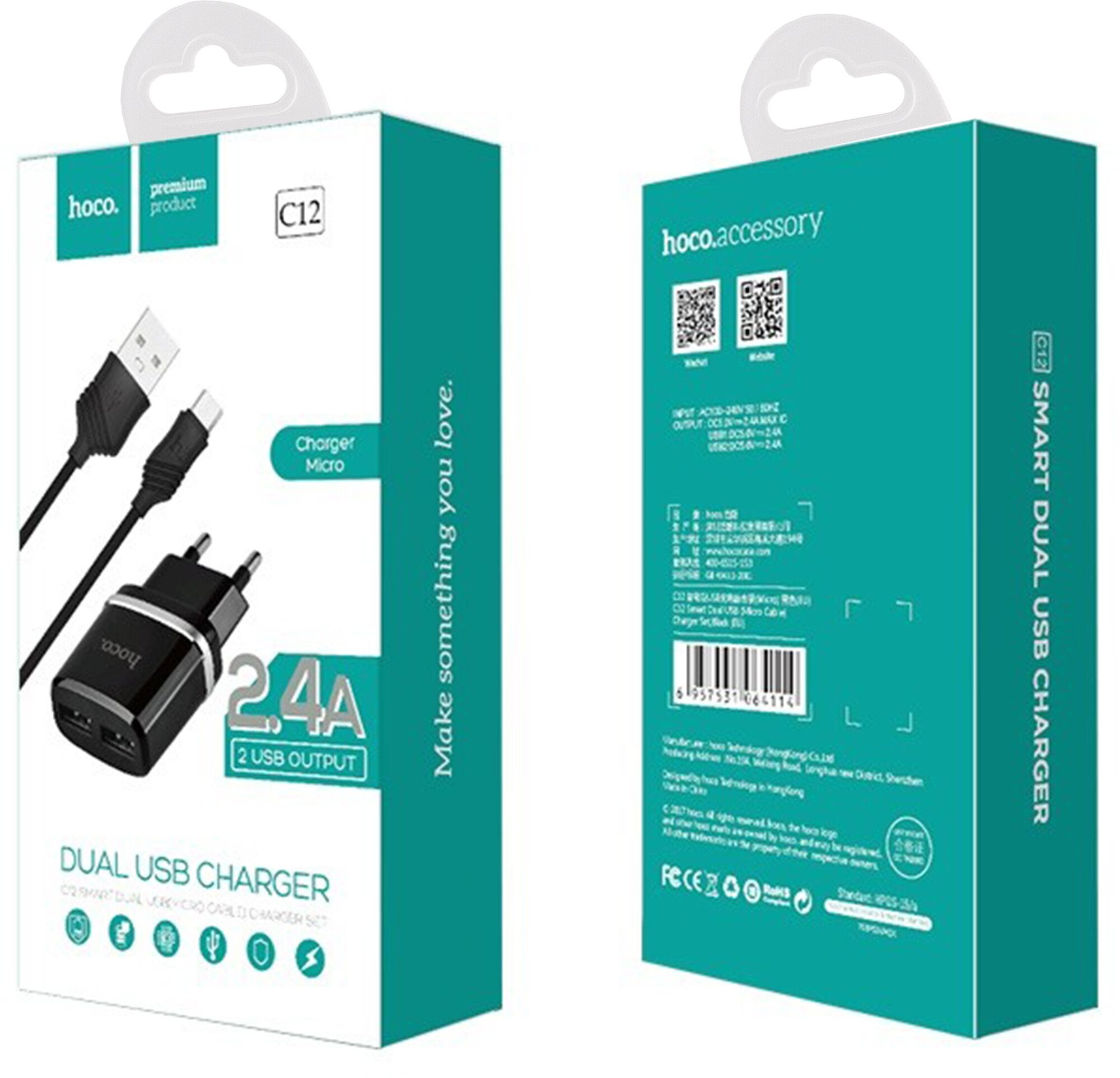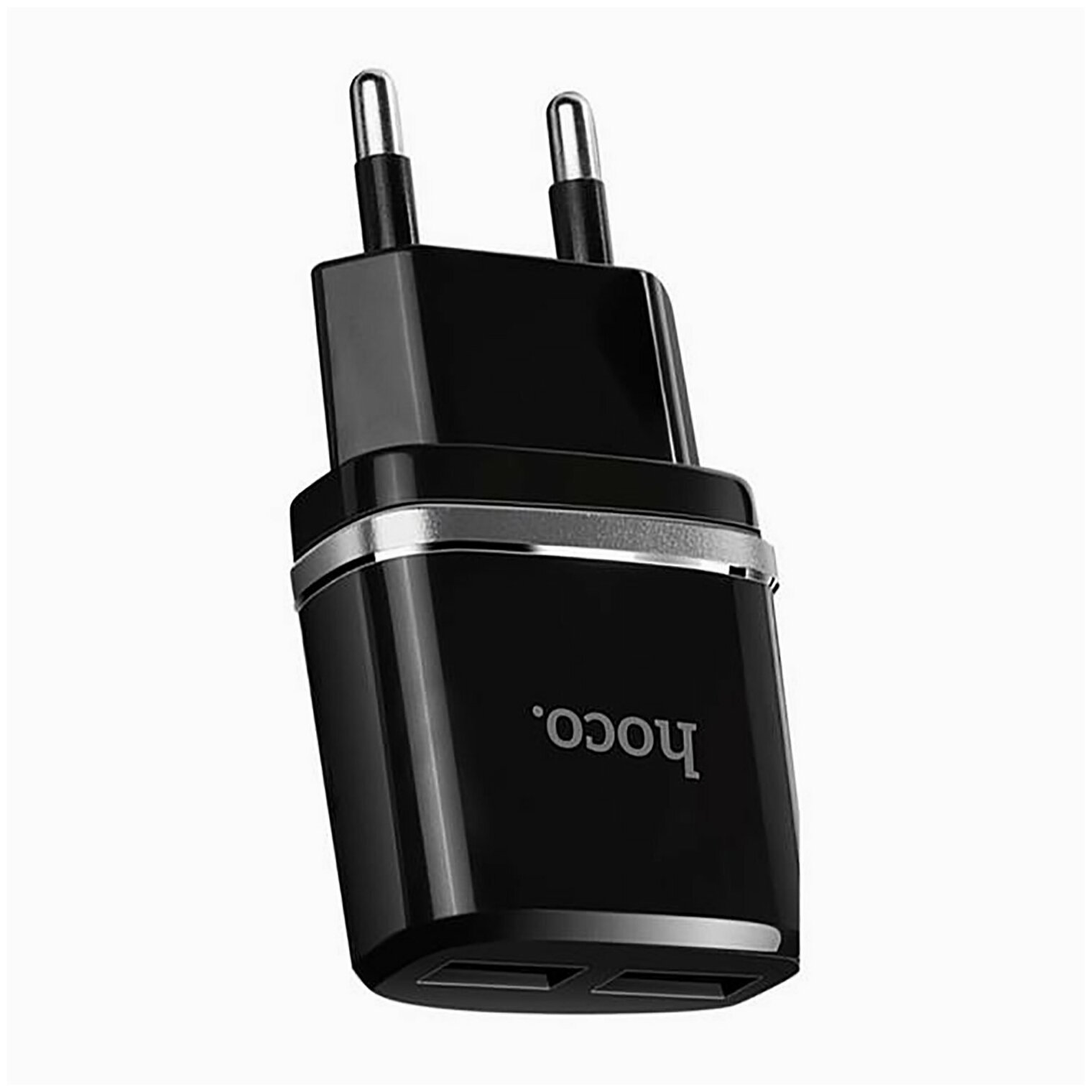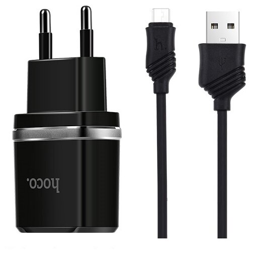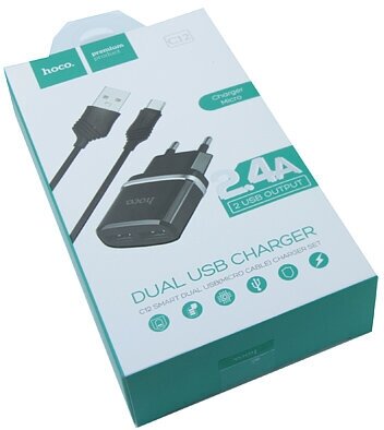Зарядное устройство HOCO, C12 с кабелем micro-USB (2 USB/2.4 A), чёрное