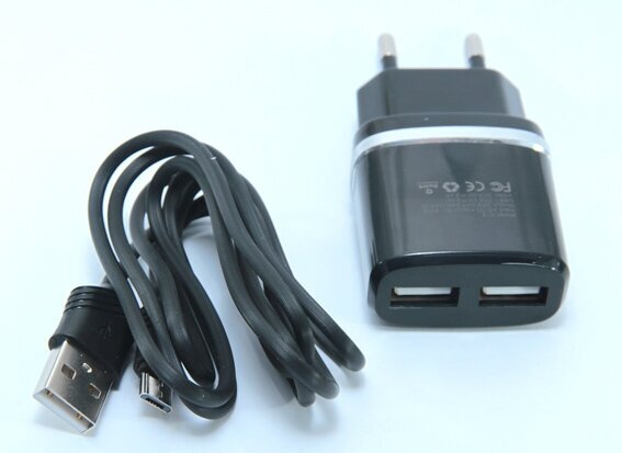 Сетевое зарядное устройство 2 в 1 Hoco C12 для micro USB, 010523 Черный